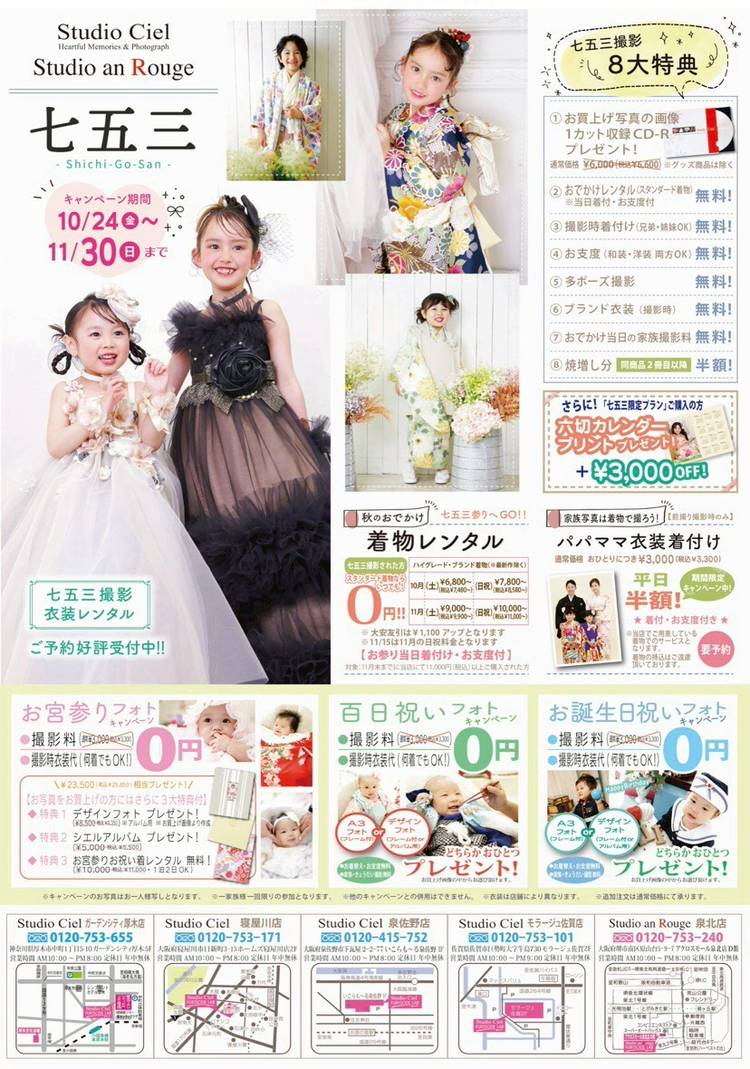 スタジオアンルージュは、立体背景を用いた今までに無いお宮参り、七五三、振袖、ブライダルの写真撮影が可能なトータルフォトスタジオです。