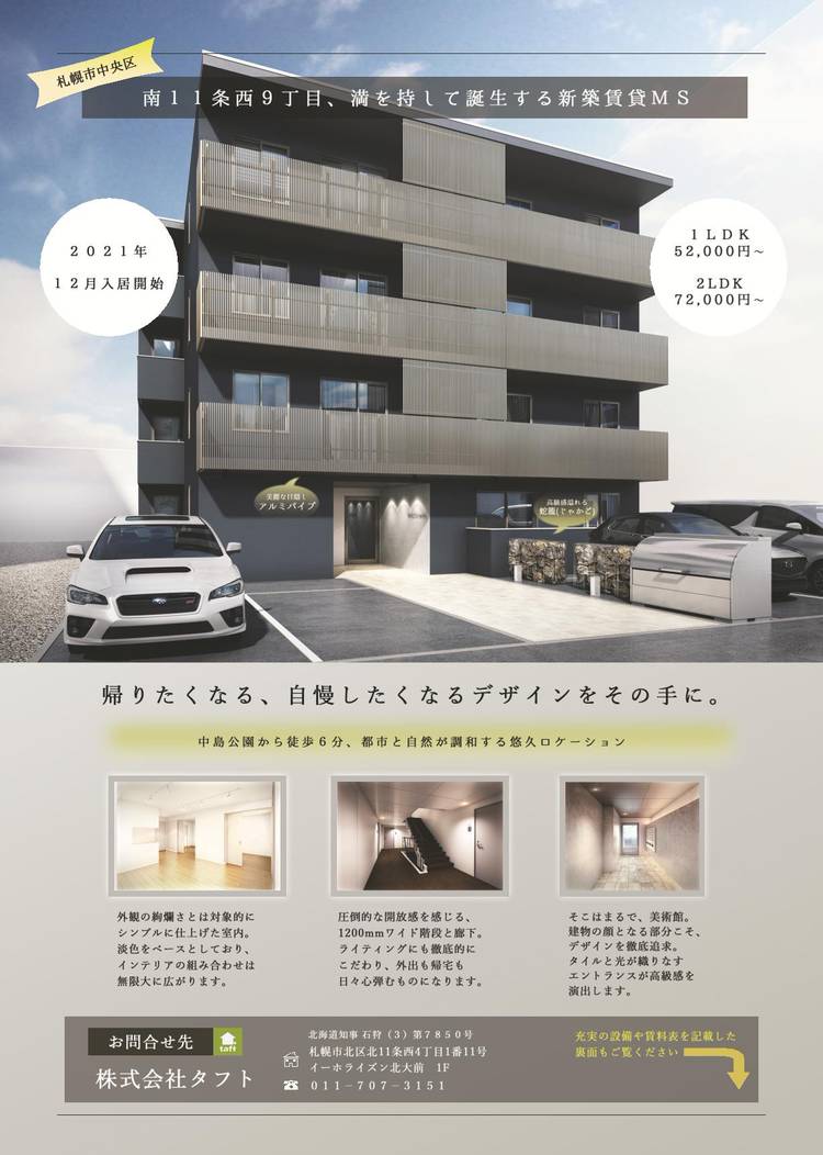 下記期間GW休業としております。 賃貸・テナント仲介:5/2(日)~5(水) 管理部:5/1(土)~5(水) 売買事業部:5/1(土)~5(水) 休業期間中にいただきましたご連絡については、営業開始後、順次ご対応させていただきます。 ※万が一、3営業日を過ぎても担当者よりご連絡がない場合は 下記メールアドレスへ再度お問い合わせください。 →taft@taft.co.jp