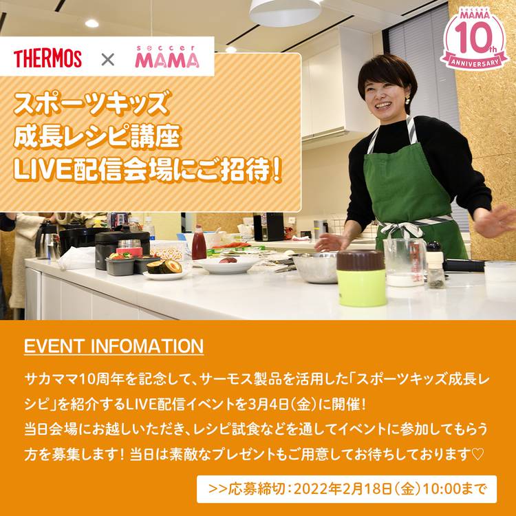 【#サカママオンラインフェスタ】#THERMOS によるオンラインイベント✨ 2月22日(水)、フライパンやボトルなど、様々なシーンに役立つアイテムを作っているサーモス株式会社によるオンラインイベントを開催します。 今回のイベントでは、スポーツ栄養士の河村美樹さんをゲストにお迎えし、忙しい年度末に便利な簡単栄養サポートレシピを教えてもらいます! また、忙しいママに役立つ #サーモス の調理器具...