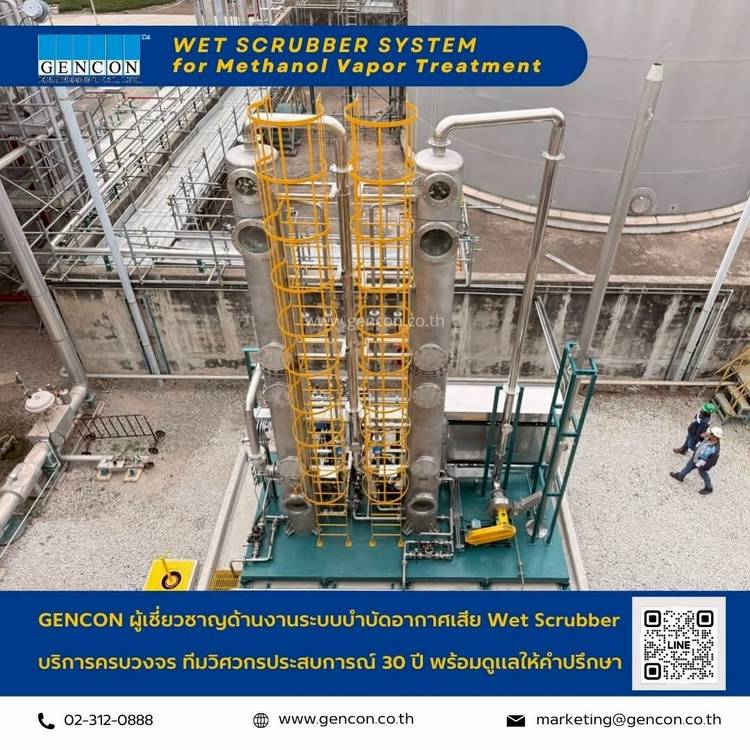 GENCON ENGINEERING ดำเนินการติดตั้งระบบบำบัดอากาศเสียชนิด Wet Scrubber สำหรับบำบัดไอสาร Methanol จากกระบวนการผลิตภายในโรงงานอุตสาหกรรม . ระบบ Wet Scrubber ได้รับการออกแบบโดยทีมวิศวกรผู้เชี่ยวชาญของ G...