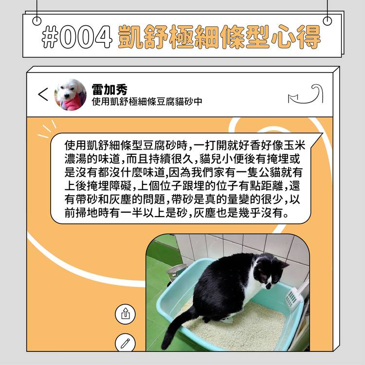 【體驗完美凝結,揮別細碎尿塊👋】 #凱舒極細條豆腐砂 鏟起不崩、輕鬆結塊>>> https://kyson.cc/XsRJM 「買回來實測三周,依舊如開封好用」 「貓咪吃濕食,尿量多一樣輕鬆結塊」 「凝結強、用量省,不會想再換它牌貓砂」 以上,來自回購數次的貓友們,真實的回饋。 💟高比例瓜爾豆膠 x 剛好的豆腐纖維比例 鏟起不崩、吸尿更快、輕鬆結塊,告別砂盆潮濕悶臭。 💟統一寬度1.5...