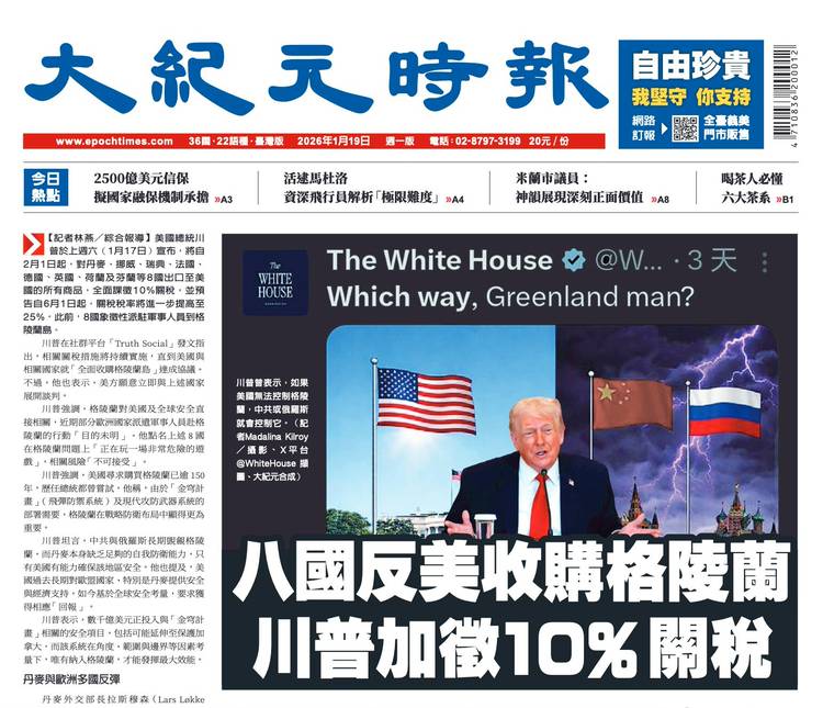 ☀【早安大紀元】—1/22 🔷談格陵蘭方案 川普:會讓北約滿意 https://epochtim.es/t3s12t ◼️美眾議員提法案列台灣為「北約+」 https://epochtim.es/k58fnp ⚠️分析:從兩個影片透視中國的兒童器官移植 https://epochtim.es/5a91p5 🌺昔日文人作對子:開玩笑語出驚人 渡危難自娛娛 https://epochtim....