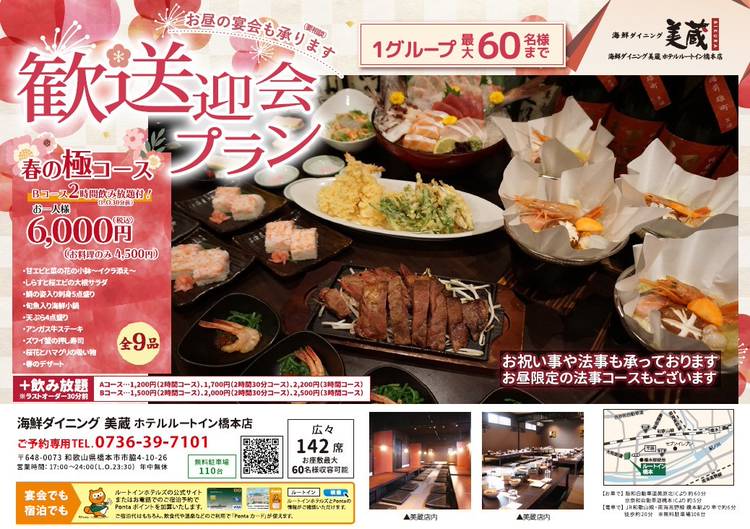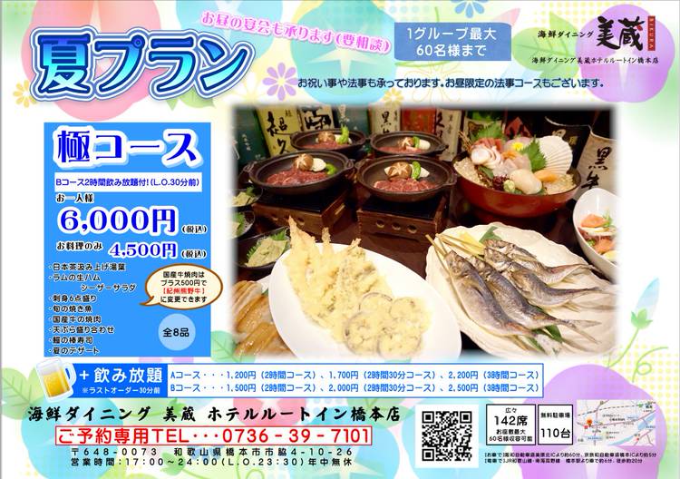 美蔵ルートイン橋本店から夏宴会コースのご案内です