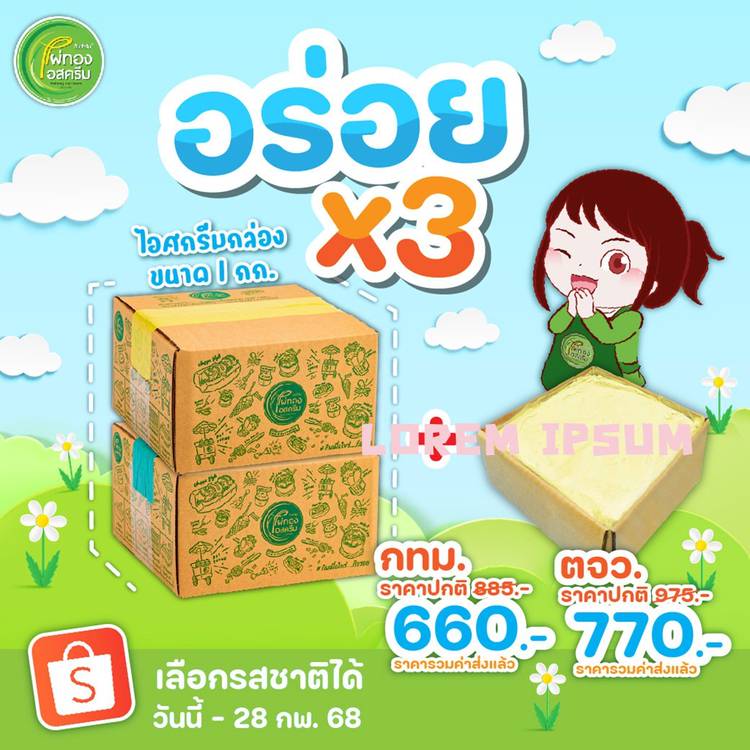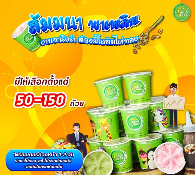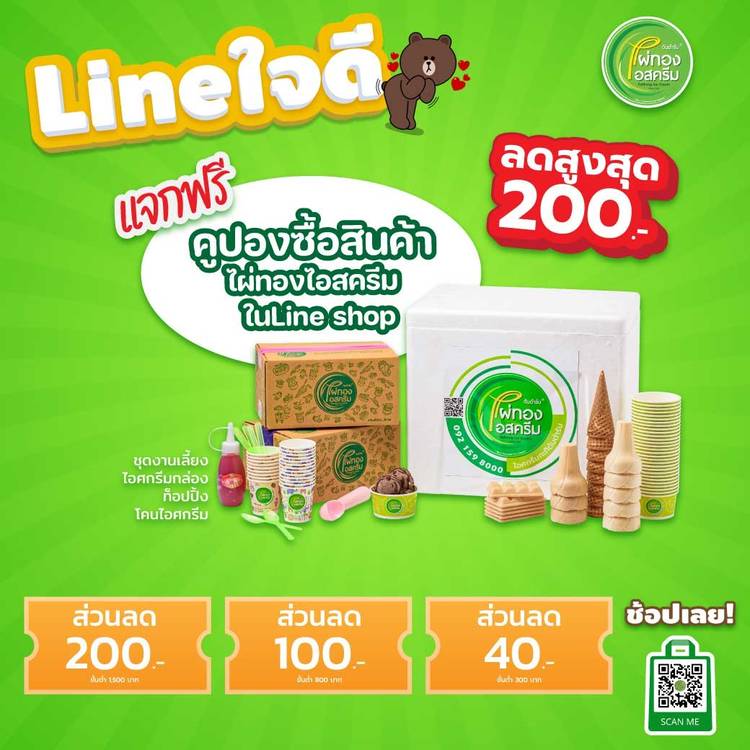 ไผ่ทองไอสครีม ส่งความอร่อยถึงหน้าบ้าน (cracker) กับโปรโมชั่น "ซื้อ 2 ฟรี 3!" ซื้อ (icecream cone) ไอศกรีมกล่องขนาด 1 กิโลกรัม 2 กล่อง แถมฟรีทันที! โคนหวาน 2 แพค (icecream cone) (แพคละ 10 ชิ้น = 2...