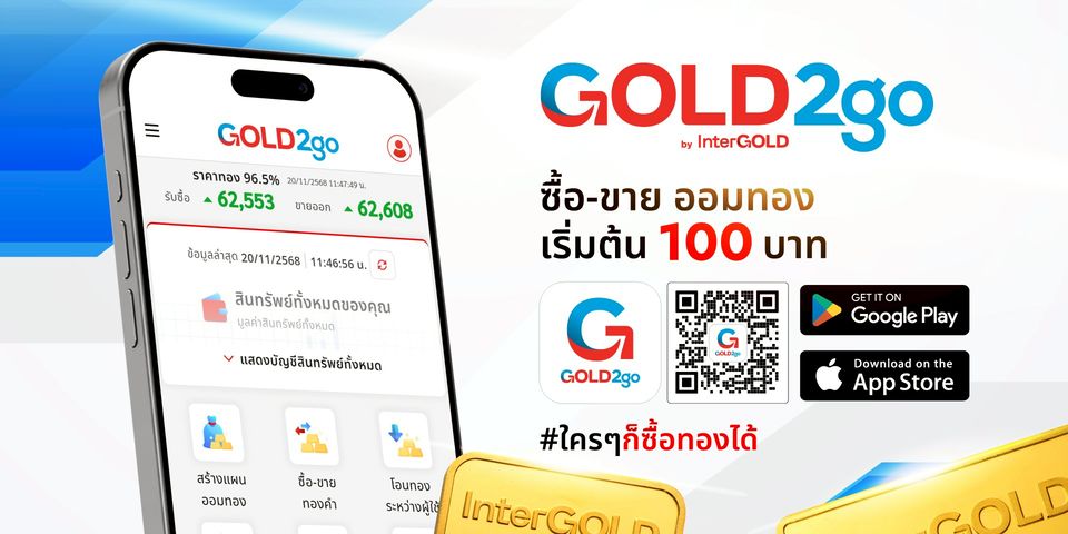 ให้บริการออมทอง และซื้อขายทอง แบบไม่ต้องวางหลักประกัน ผ่านแอปพลิเคชันหรือเว็บไซต์ Gold2Go by InterGold เริ่มต้นด้วยเงินเพียง 100 บาท สามารถซื้อขายออมทองออนไลน์ได้ตลอด 24 ชั่วโมง 7 วัน อยู่ที่ไหนก็ซื้อทองได้