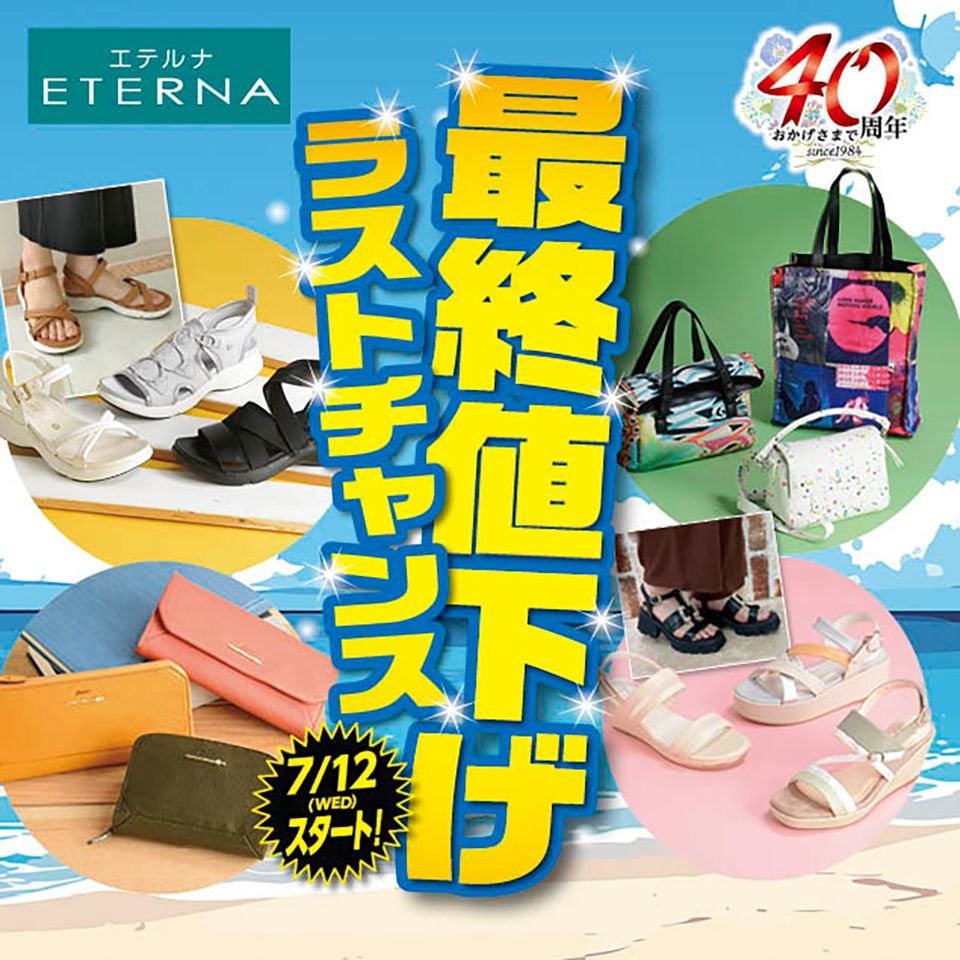 1984年に創業以来、シューズとバッグの専門店として、関東近県で9店舗を展開しています。 エテルナでは、何よりもクオリティとホスピタリティを大切にし、常にお客様に満足のいく商品を提案して喜んでもらえるよう心掛けています。 皆様のご来店をスタッフ一同心よりお待ちしております。