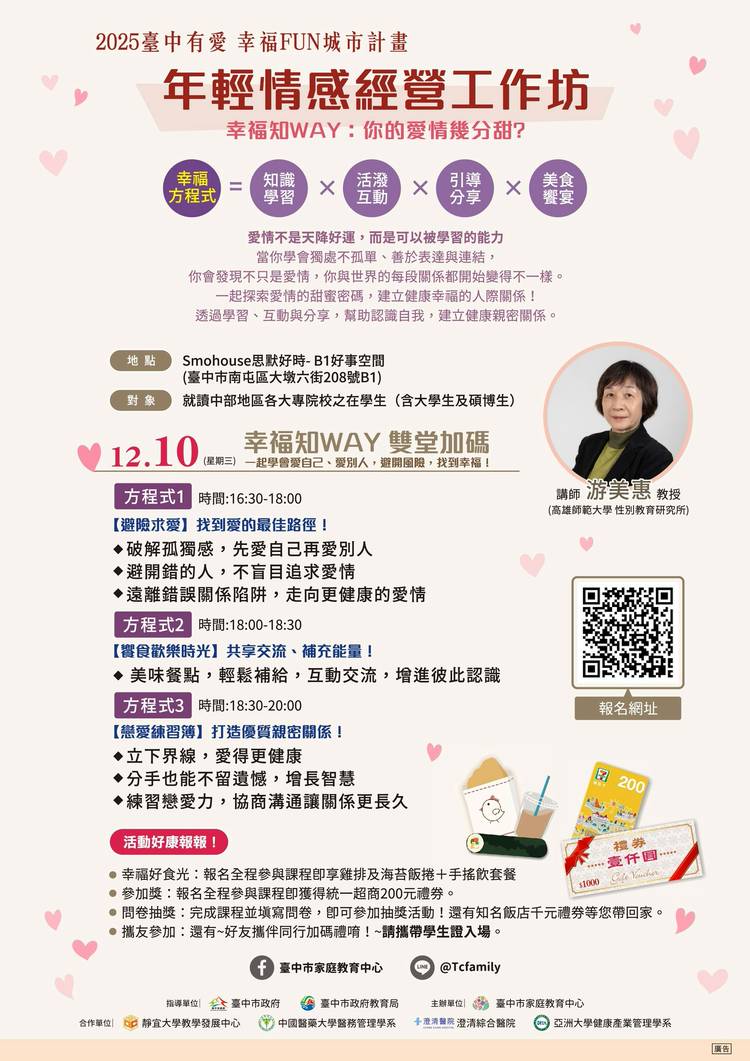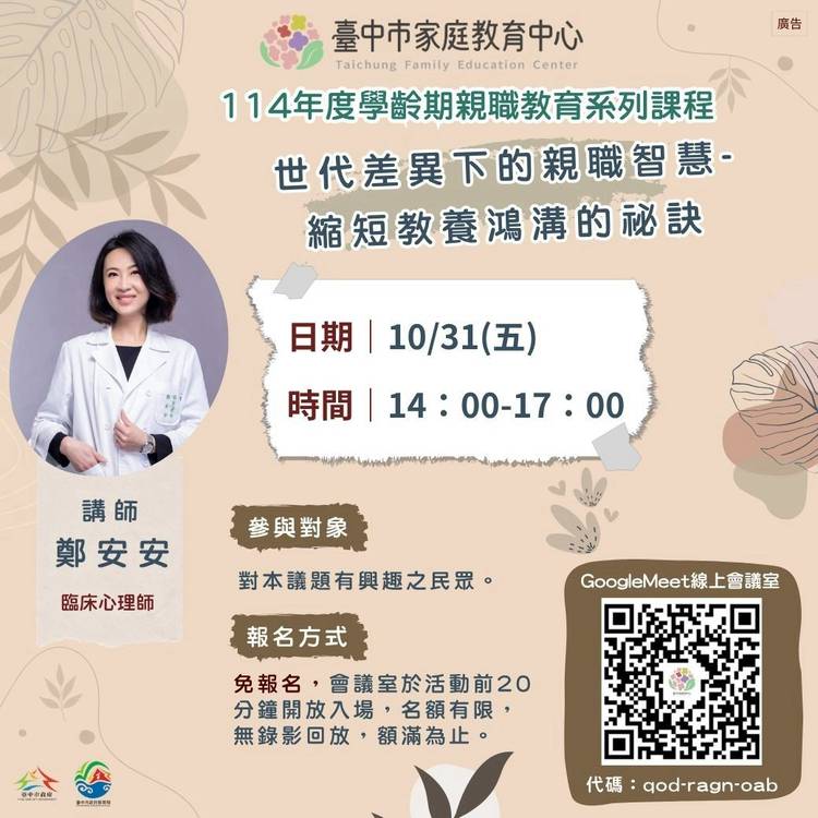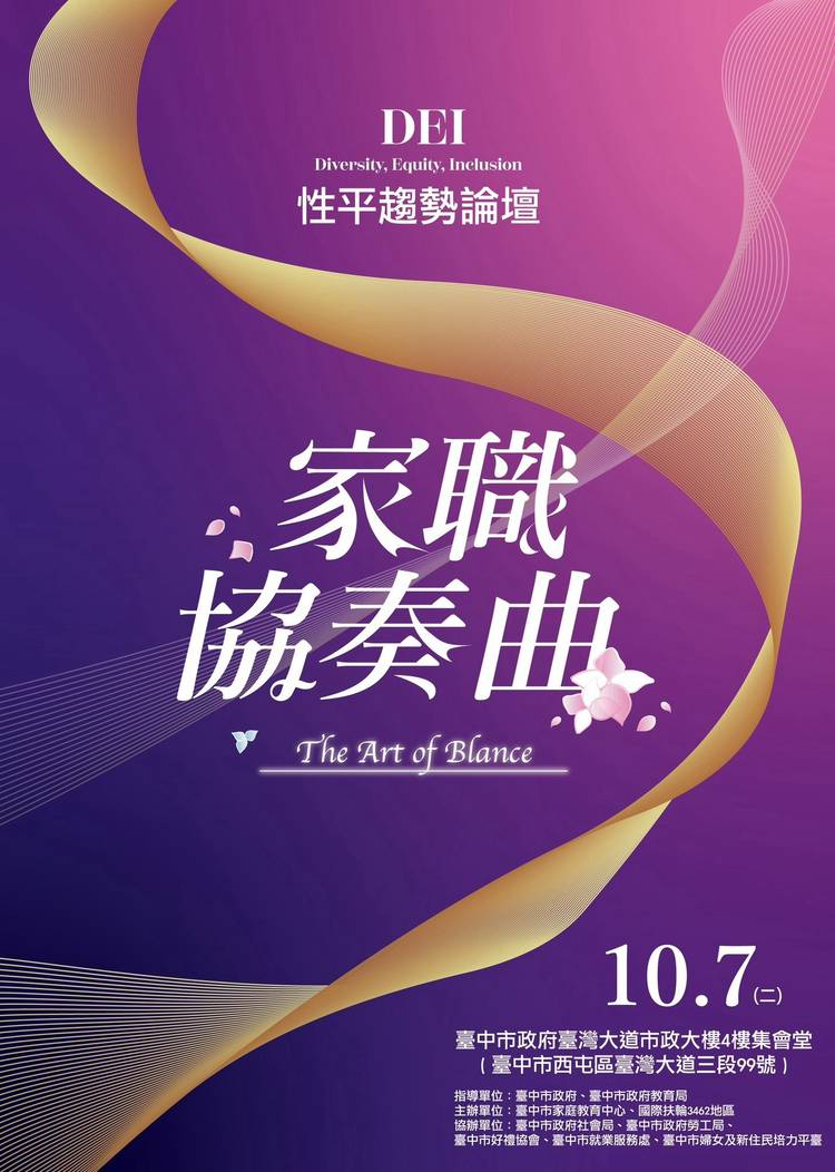 🎼 家職協奏曲|性平趨勢論壇 即將登場! 在人生的樂章中,家庭與職場都扮演著重要角色, 我們是否能用不同角色奏出協和的旋律? 這場論壇,將集結來自各領域的女性代表, 分享她們如何穿梭在生活與工作的交響中, 活出獨一無二的韌性與光芒。 ⟢與其被定義,不如共同定義⟣ 114年度性別教育系列活動 ×性平趨勢論壇 《家職協奏曲 The Art of Balance》 活動時間|2025年10月7日(二)...