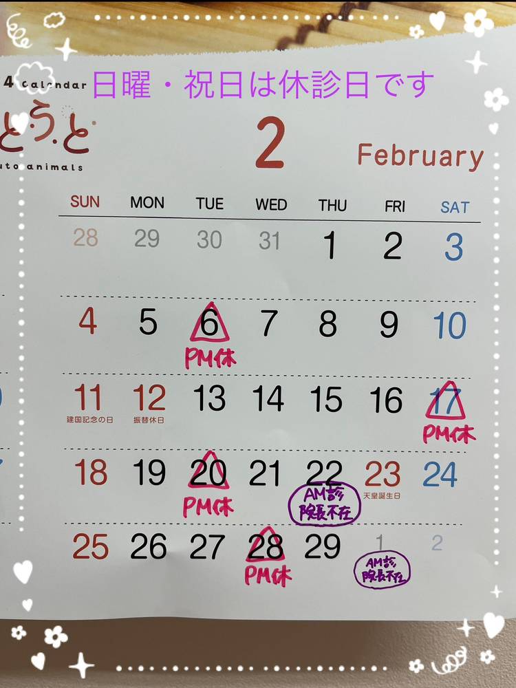 〖 臨時休診のお知らせ 〗 ✤ 10/2・9・22・25・30 午後診療のみ休診 ※ 10/28 午前診療は柴田先生のみの診察となります。( 院長不在 ) 院長の診察をご希望の飼い主さまは、午後診療に来院お願いいたします。 よろしくお願いいたします。
