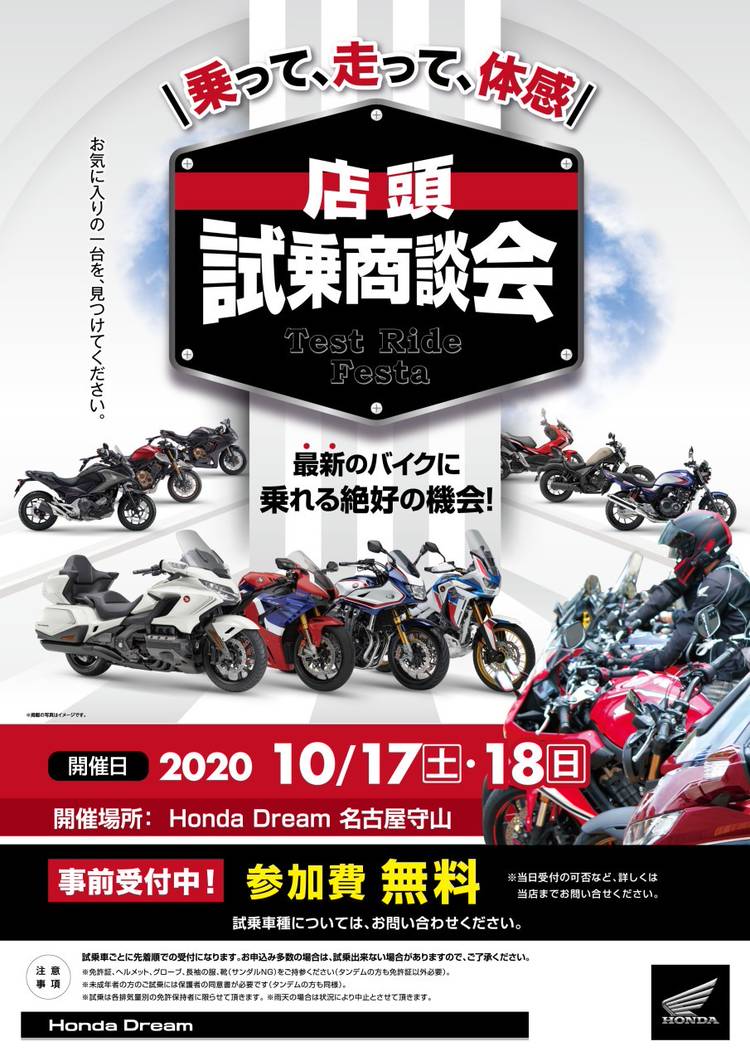 愛知県名古屋市守山区のHonda全機種取り扱い店「ホンダドリーム名古屋守山」です。 Honda新車販売はもちろん、Honda各種ウエアやグッズも取り扱い、最新機種の試乗車もご用意しています。 ドリーム店ならではの各種サービスも充実、販売からアフターサポートまでライダーの皆様をバックアップします。 ぜひご来店ください。スタッフ一同お待ちしております。