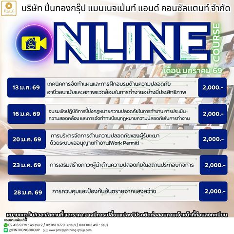 🚀 ปั้น "จป.เทคนิค" มืออาชีพ! เสริมเกราะความปลอดภัยให้องค์กร เรียนรู้ครบเครื่อง: 🔍 ตรวจประเมิน – 📊 วิเคราะห์งาน – 🛡️ ควบคุมความเสี่ยง ✨ อบรม 5 วันแบบ VIP! สบายกว่า คุ้มกว่า ที่ปิ่นทองพาราไดซ์ ...