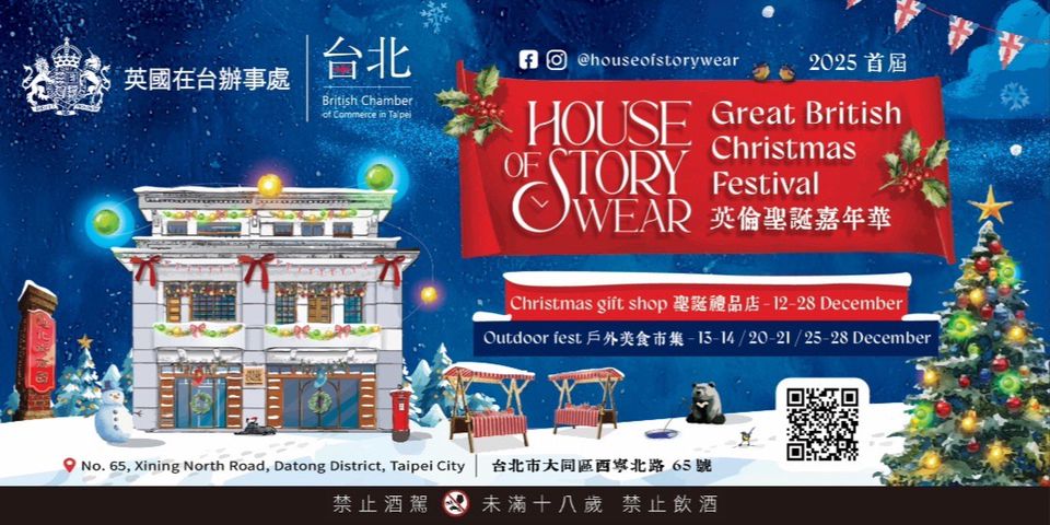 在充滿歷史韻味的大稻埕街區,House of Story Wear 永續百貨將為您打造一場融合英倫風格與台灣在地文化的聖誕盛宴。從璀璨的聖誕燈飾到精緻的英國選品市集,每一個角落都充滿節慶的魔法與故事的溫度。