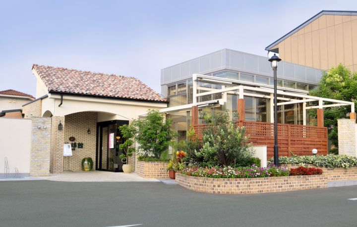 外観は南プロヴァンス地方の落ち着いた佇まい、天井の高さ5mのゆったりとした店内、木々や花々に囲まれたオープンカフェを新設し、快適で癒しの空間をお届けします。客席数:96席(テラス席16席、全面禁煙) 駐車場:42台