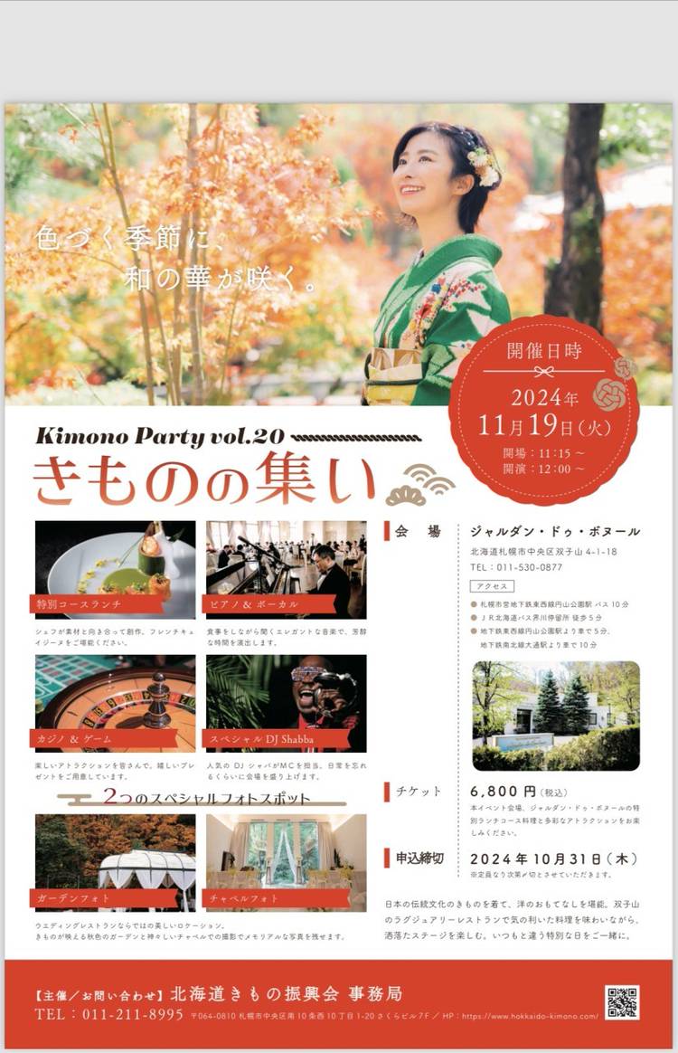北海道札幌、狸小路にある着物専門店です。 礼装用の留袖や訪問着から普段使いの小紋や紬まで、 人間国宝の作品からお求めやすいものまでご用意しております。 お着物のお手入れや眠っていたお着物の メンテナンスも承ります。 着物は持っているけど一人では着ることが できない方は「着方教室」にご参加ください。 和装のことなら何でもお任せください。