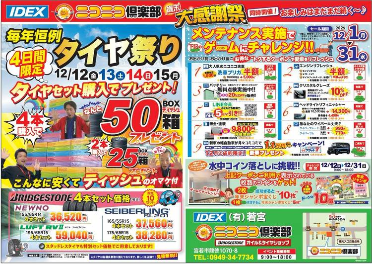 ニコニコ倶楽部本店です。クルマの販売・買取、板金塗装、自動車保険、車検、メンテナンス、カー用品まで全てに対応いたします。認証整備工場完備したガソリンスタンドです。