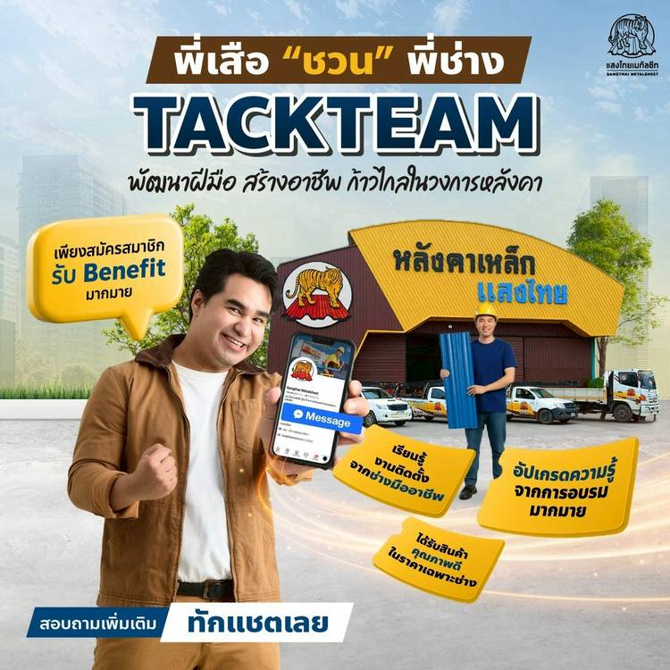 โอกาสทองของพี่ช่าง 💪 "พี่เสือ" จากแสงไทย ชวน พี่ช่างคนเก่งมา Tackteam กับเราเพื่อยกระดับฝีมือ สร้างรายได้ที่มั่นคง 🌟 เพียงสมัครสมาชิก ร่วมเป็นส่วนหนึ่งในครอบครัว เดียวกันกับเรา ก็มีสิทธิ์รับ Benef...