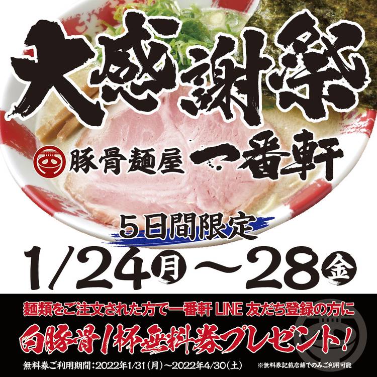 店主である三木 規彰が九州長浜で本場の豚骨ラーメンに衝撃を受け、「何としてもこの味を名古屋に持ち帰りたい」その一心で始まった一番軒。 常に最高を追い求める我々のこだわりは、本場の再現ではなく、豚骨を極めた者だけが出せる味。 「極豚」の二文字に想いを込め、お客様に笑顔を提供できる「最高の一杯」にこだわり続けます。 ◎スープ/まるごと35頭の豚骨を特注釜で長時間炊き込み、余すことなく旨みを抽出した一番だしのみを使用する一番軒のスープ。4万5000キロカロリーの超高火力で脂の粒子はきめ細かく混ざり合い、過剰なクドさが削ぎ落とされたスープは、すっきり飲み干せるほどまろやかに。 ◎極細麺/小麦粉の配合や、食感を生み出すカットの仕方まで、試行を繰り返し辿り着いた世界にひとつだけの「一番軒オリジナル低加水極細ストレート麺」。替玉の際にはそのまま口に運んで、小麦の香りや食感を楽しんでいるお客様もいらっしゃいます。 ◎かえし/旨みが強くボディのしっかりした九州産本醸造醤油を4種類ブレンドした、門外不出の元ダレ。コク深く口から鼻にぬける芳醇な香りが、麺にしっかり絡みます。 ご来店お待ちしております。
