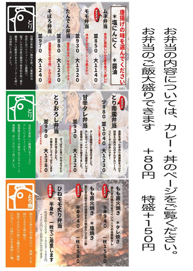 伊丹のからあげ専門店です。 店で鳥を捌いてタレに漬け込んで数日・・・美味しいからあげに仕上げます。 専門店ならではのこだわりがたくさんあります。是非一度お食べください。 <営業内容> 「テイクアウト」は子ども会、自治会等の集まり時 予約いただきますと市内配 送いたします。詳しくはご相談ください。 また通常注文でも電話いた だきますとご指定の日時にお作りいたします。 「店内」は昼はランチ、夜は居酒屋として営業中! なんと!! 毎月第3第4木曜日は 関西初!?からあげ専門店の食べ 方放題も実施中。 通常からあげメニューが食べ放題と太っ腹w 定休日は特にありませんが、月に3回ほど月曜日となります。 GW、お盆は営業いたします 年末年始、新年は元日より4日まで営業。