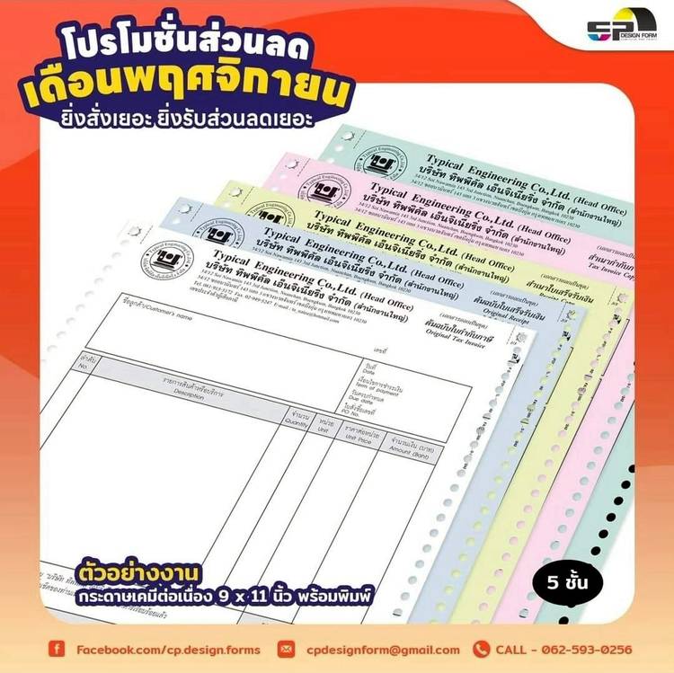 🥰 ขอขอบคุณ บจก.ทิพพิคัล เอ็นจิเนียริง 🙏🏻 ที่ไว้วางใจพิมพ์แบบฟอร์ม #ใบกํากับภาษี #ใบแจ้งหนี้ #ใบเสร็จรับเงิน ⭐️ ประเภทงานพิมพ์ ✅ กระดาษต่อเนื่องแบบเคมีในตัว ✅ ขนาด 9x11 นิ้ว พิมพ์ 1 สี 1⃣ ชั้นที่ 1...