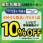 12/13(土)・12/14(日)のみ!LINE限定10%OFFクーポンプレゼント