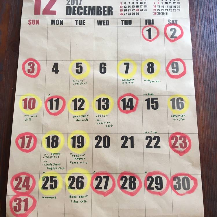 【1月のKouma】 赤マル・お休み 黄マル・ワークショップに参加したり 限定スイーツを買っていただくと ポイント2倍! 毎月25日は、Koumaの日! もれなくポイント2倍! ・ 詳細は、ブログをみてね http://koumazakka.jugem.jp/