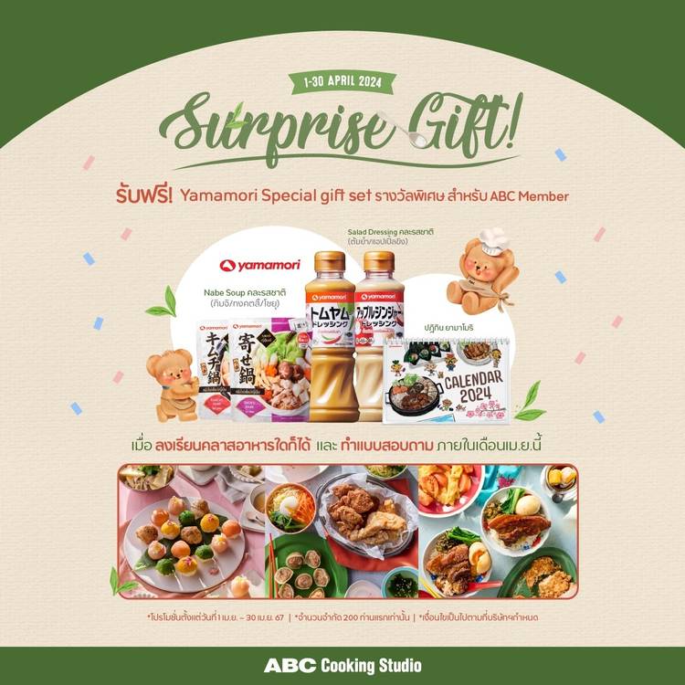 𝘚𝘶𝘳𝘱𝘳𝘪𝘴𝘦 𝘎𝘪𝘧𝘵! 💕 #รับของรางวัลพิเศษ สำหรับ ABC Member 👩🍳 YamamoriThailand ชวนมาเรียนทำอาหารกัน~ . เพียงจอง และเรียนคลาสทำอาหารหลักใดก็ได้ รับฟรี!! 𝗬𝗮𝗺𝗮𝗺𝗼𝗿𝗶 𝗦𝗽𝗲𝗰𝗶𝗮𝗹 𝗴...