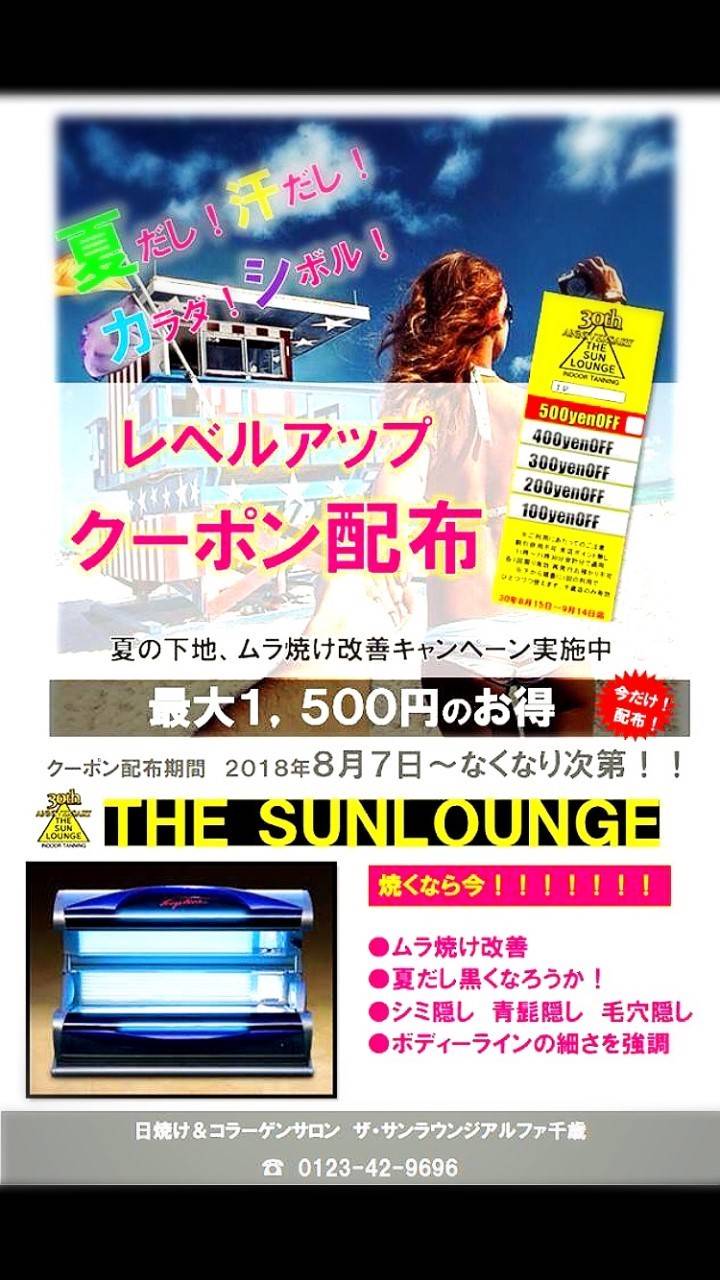 日焼けサロン ザ サンラウンジ千歳店です? 当店は2009年より千歳市中心部で営業をしております、日焼けメニュー以外にもコラーゲンマシーンも完備、アパレル販売ブースも御座います。 強力マシーン完備 無料駐車場完備 更衣室個室 是非ご利用ください(╹◡╹)