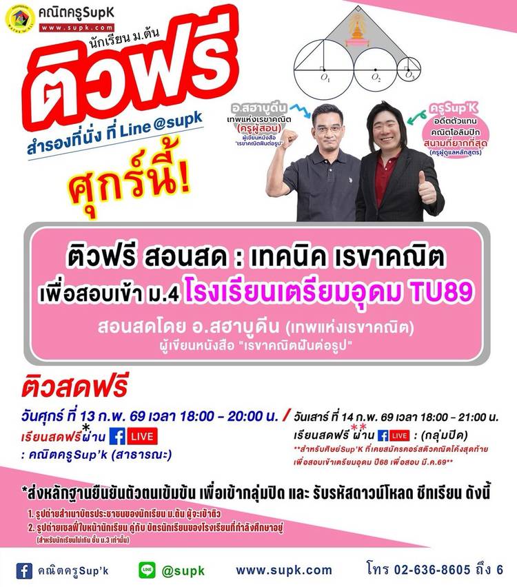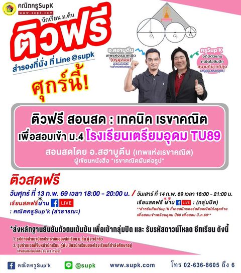 สอนเทคนิคและตะลุยข้อสอบยากๆ เพื่อการสอบเข้า ม.4 เตรียมอุดม , มหิดล , กำเนิดวิทย์