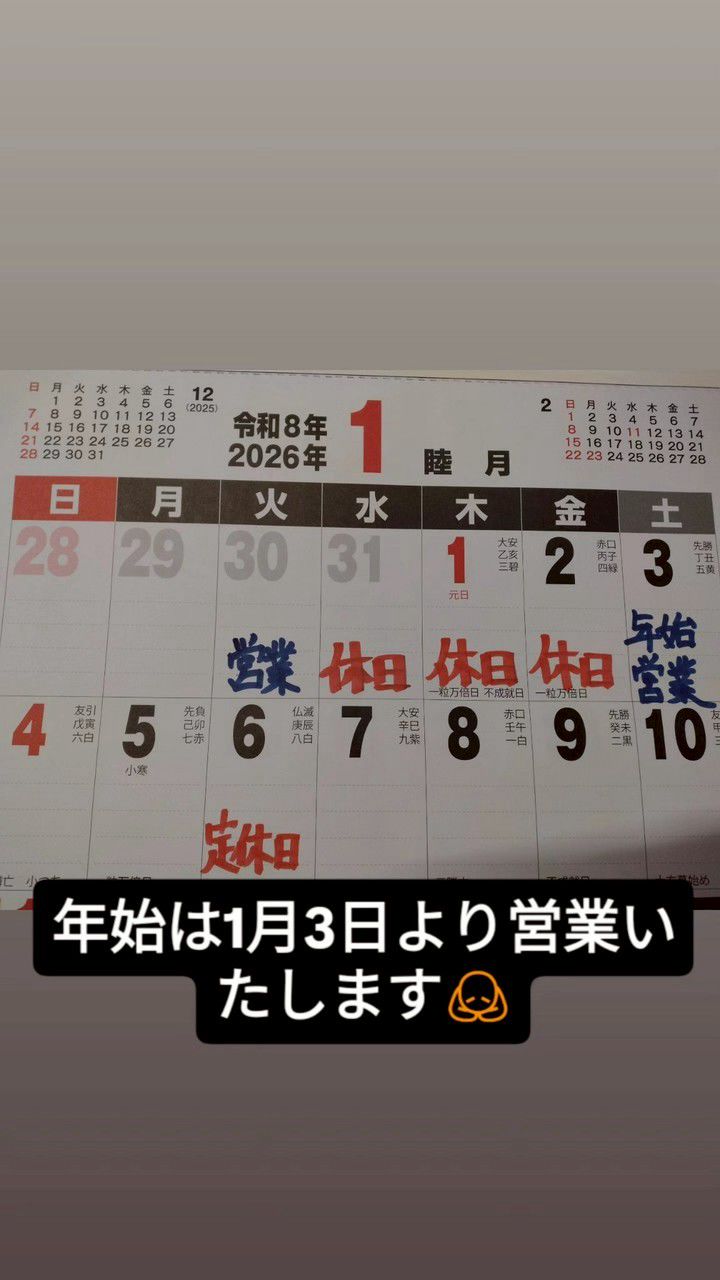 31日のある月は、第三月·火曜日連休になります🙇