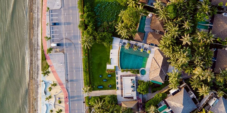 Find Sheraton Hua Hin Pranburi Villas in an alluring destination with transformative facilities ready for a romantic couples getaway. Our serene hotel is nestled on the lush beaches of the Gulf of Thailand and near historic Pranburi sites including the Chao Mae Tubtim Thong Shrine. Host your next business retreat, wedding or event in Hua Hin at our versatile indoor hotel. Enjoy a variety of on-site dining options, including rooftop seating for views of Pranburi or alfresco pavilions surrounded by lily ponds. Relax poolside with a refreshing cocktail or explore Hua Hin on wheels with our complimentary bike rental program. Challenge yourself with a workout in our modern fitness center, open 24/7. Each of our hotel's 53 villas include a private swimming pool, sunken outdoor bathtub and breathtaking views of the ocean for your complete privacy. Expand your horizons in Pranburi, Thailand, with Sheraton.