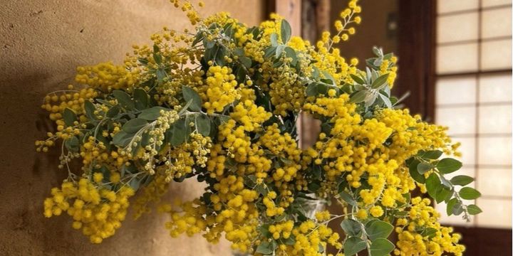 【3月のご案内とお知らせ】 「季節を束ねる」ワークショップへようこそ!今月のテーマは \風薫るミモザリース/です 初めての方も大歓迎です! 楽しい時間が過ごせるように、リラックスして、どうぞ手ぶらでお越しくださいね。 ミモザの黄色いぽわんぽわんの魅力を一緒に感じながら、素敵な作品を作りましょう🌼 ※オンライン講座は事前に花材をお送り致します。