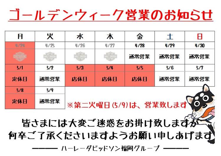 ハーレーダビッドソン福岡 〒816-0912 福岡県大野城市御笠川2-11-2 TEL:092-504-1801 FAX:092-504-0452 ハーレーダビッドソン北九州 〒800-0231 福岡県北九州市小倉南区大字朽網722-1 TEL:093-472-8012 FAX:093-472-8016 ユーズドバイクセンターBig Apple 〒812-0857 福岡県福岡市博多区西月隈2-7-43 TEL:092-418-3600 FAX:092-418-3606