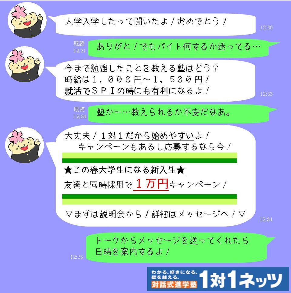 1対1で一緒に働く先生を募集しています!