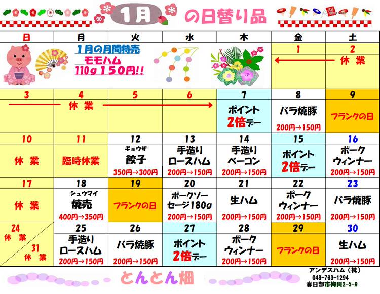 皆様こんにちは😃 今日は真夏に戻った様な暑さでしたが いかがお過ごしでしょうか? 本日はアンデスハムの直売店 とんとん畑の10月のお買い得カレンダーをアップします! ちょっと早いですが、是非ご覧になって 下さい。 皆様のご来店心よりお待ちしております。