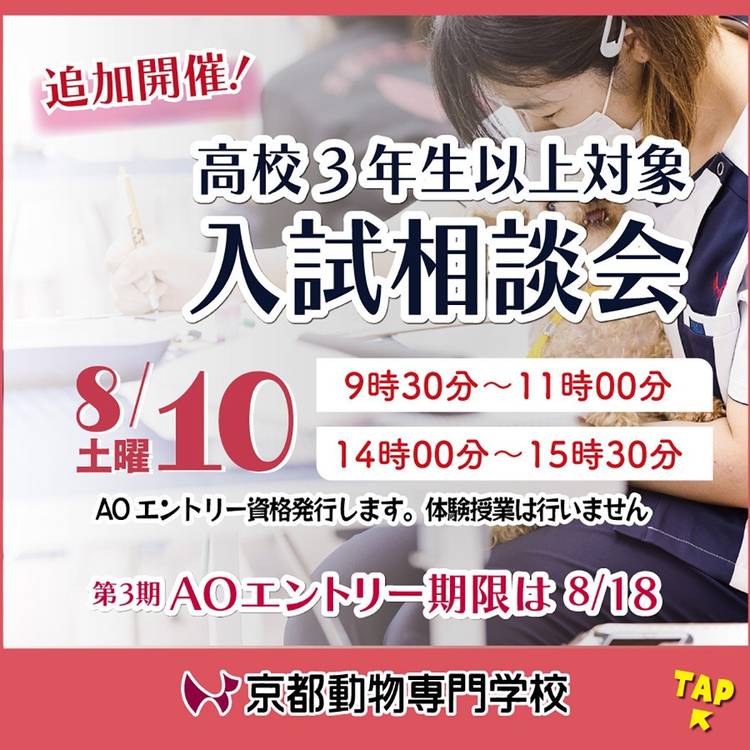 トリマーを目指すなら京都動物専門学校。 今なら間に合います。 まずは、ご相談ください。 https://kyoto-dobutsu.mkg.ac.jp/opencampus/ 平日ならこちら https://kyoto-dobutsu.mkg.ac.jp/opencampus/kengaku/