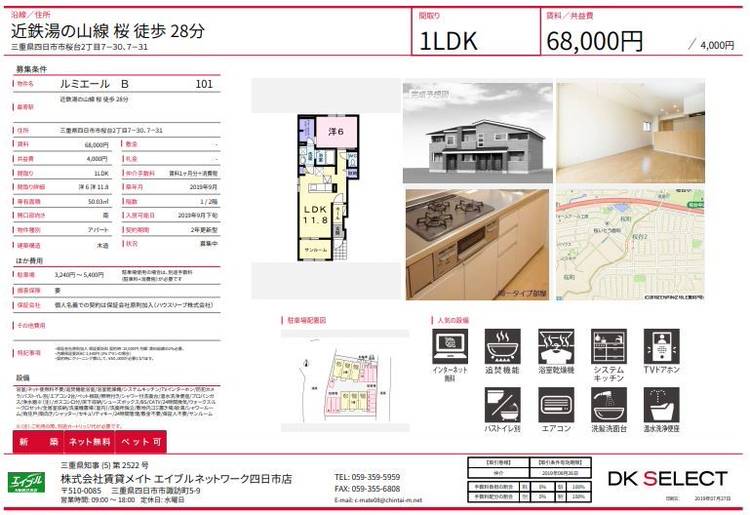 四日市市桜台2丁目にペットも飼える新築物件の募集が始まりました! 入居開始は2019年10月スタートの予定です。 インターネット無料♪エアコン2基付き♪ 人気が予想されます。(^^♪ 気になる方はスタッフにお尋ねくださいませ。