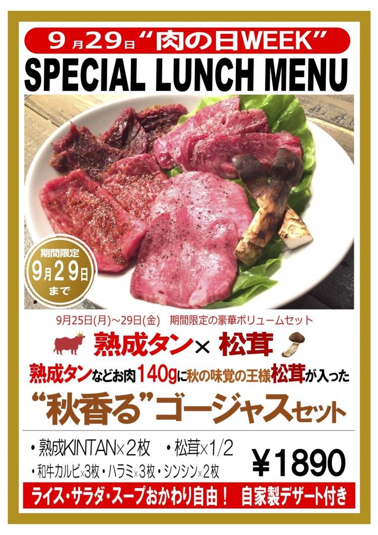 おはようございます 原宿焼肉KINTANです。 今週は、肉の日ウィークです♪ 今回は豪華に月~金の26日~30日までやっちゃいます!! 内容は・・・ ザブトンの厚切りです! 厚さ2‐3㎝はある極厚のザブトンをご提供です♪ 食べ応え十分、ジューシー&リッチな ランチを是非この機会にお楽しみください!!! 早い者勝ち!なくなり次第終了となりますので お急ぎください!!! ライス・スープ・サラ...