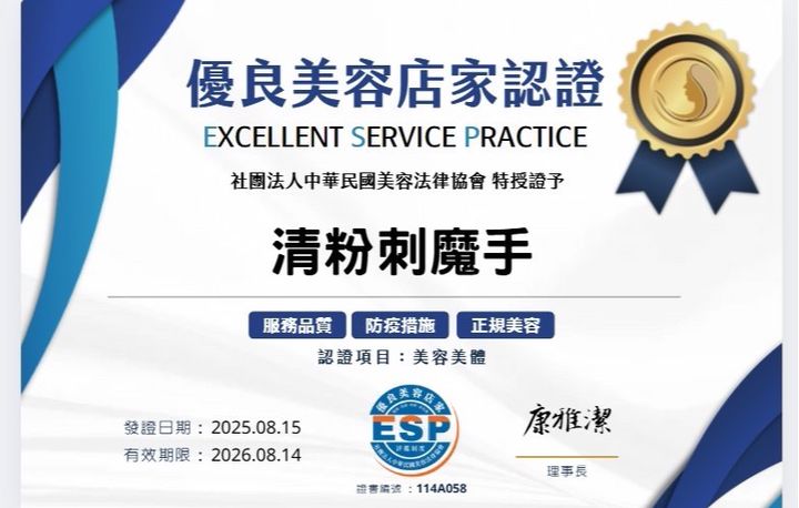 5.本店通過ESP美容法律協會優良美容店家認證