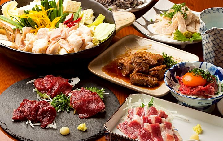 メディアも注目のすっきり系「柚子もつ鍋」をはじめとして、複数の味が楽しめる「もつ鍋」、本場熊本から取り寄せる上質な「馬刺し」、常時30銘柄以上の各地の銘酒を取り揃える「日本酒」。