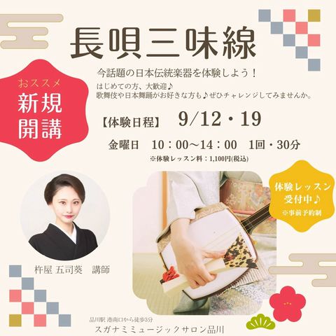 スガナミミュージックサロン品川は 音楽を愛するすべての大人が楽しみながら演奏を学べる 「大人の音楽教室」です。 落ち着いた雰囲気のサロン内では鍵盤楽器をはじめ ギターやドラム、フルート、ゴスペルなど 数多くの魅力的なコースを用意。 レッスンは一人ひとりのレベルに合わせて進めていきますので 初めての方もご安心下さい。 各コースとも無料体験レッスンをご用意しております。 ぜひお気軽に遊びにお越し下さいませ。