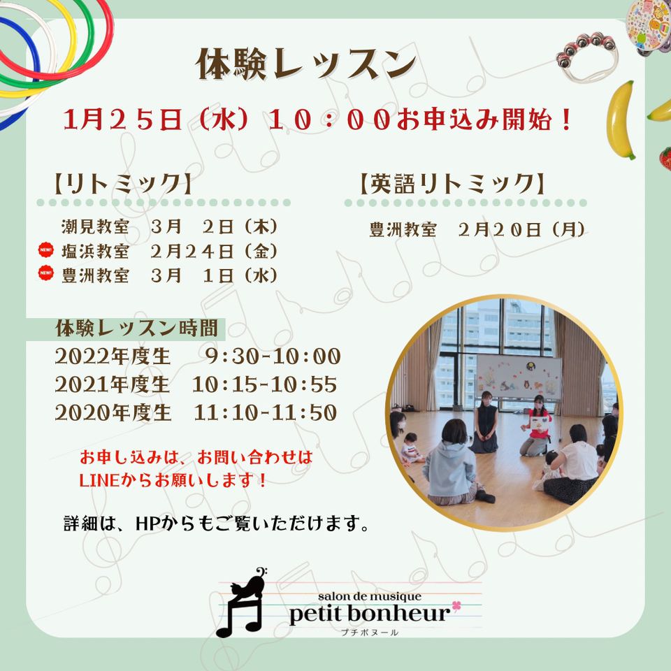 江東区潮見の音楽教室プチボヌールミュージックサロンのページです。 イベント情報はこちらからお知らせします。