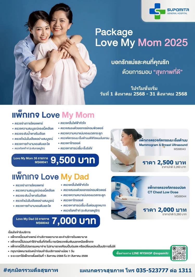 ซื้อโปรแกรมตรวจสุขภาพ ได้รับการตรวจ Fibroscan มูลค่า 3000 บาท ในวันที่ 1 – 4 ธันวาคม 2568 ตั้งแต่เวลา 09.00 – 15.00 น. จำกัดวันละ 10 ท่าน คลิกสั่งซื้อแพ็กเกจได้ที่นี่ 👇 โปรแกรมตรวจสุขภาพ Silver...