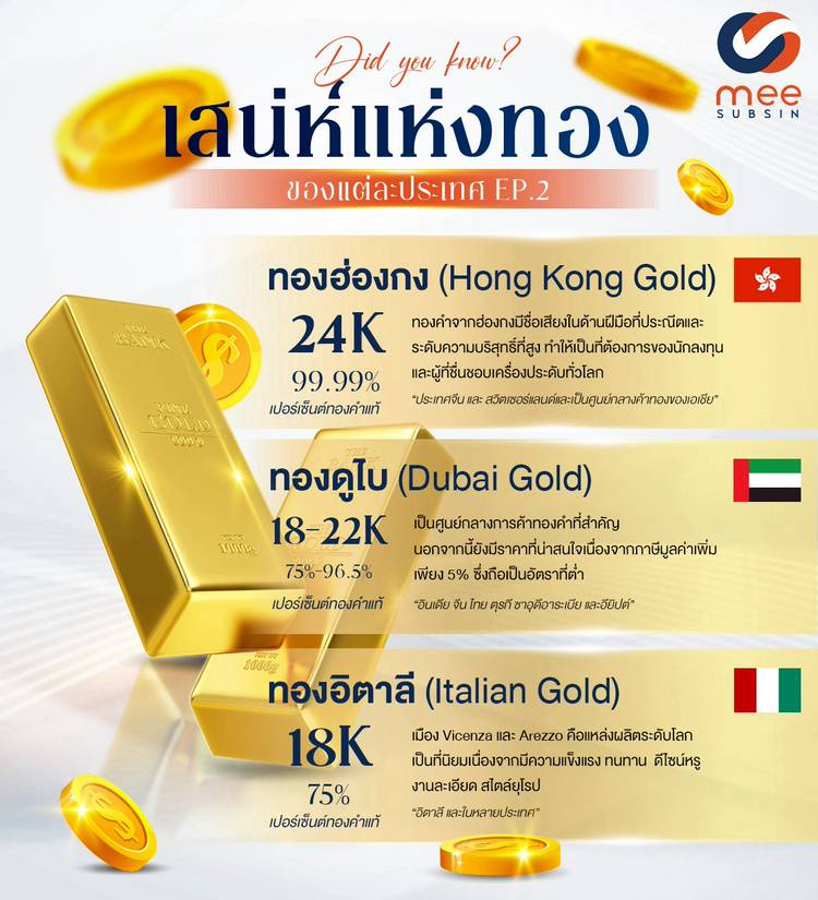“เสน่ห์แห่งทอง ของแต่ละประเทศ ep.2” . 🔸🔹 รู้ไหม? ทองคำจาก “ฮ่องกง ดูไบ และอิตาลี” แต่ละประเทศมีเสน่ห์เฉพาะตัวไม่เหมือนใคร! ไม่ใช่แค่ความงาม แต่ยังสะท้อนวัฒนธรรม ความเชื่อ และรสนิยมระดับโลก ✨ . 🏮 ทอ...