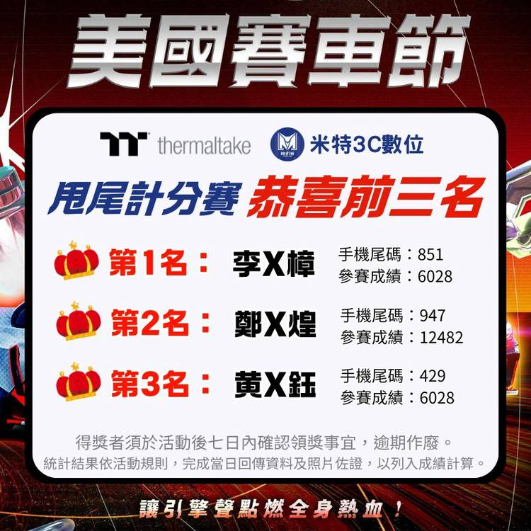 參加完美國賽車節意猶未盡嗎?! 那你不能錯過~~ ⚡⚡CyberPower 極速電力賽車挑戰賽⚡⚡ 體驗最強不斷電系統,遊戲快感不中斷! 💓由 林優格Rena 現場主持!! 🏎挑戰賽獎項 🥇1st CyberPower UPS 1000AVR 🥈2nd XBOX 無線控制器 🥉3rd CyberPower 防突波延長線 ✨現場加碼抽萬元大獎! ▪當日消費不限金額即可獲得抽獎券 ▪...