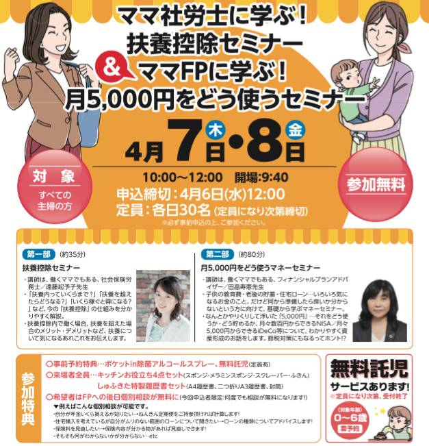 札幌のママ向けに、暮らしのお役立ち情報やちょっぴり前向きになれるヒントなどを発信している「しゅふきたママLife」のイベント情報も随時配信中。