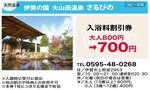伊賀の国 大山田温泉 さるびの/入浴料割引券 大人800円→700円