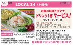 LOCAL34/対象の料理注文でドリンク1杯サービス!