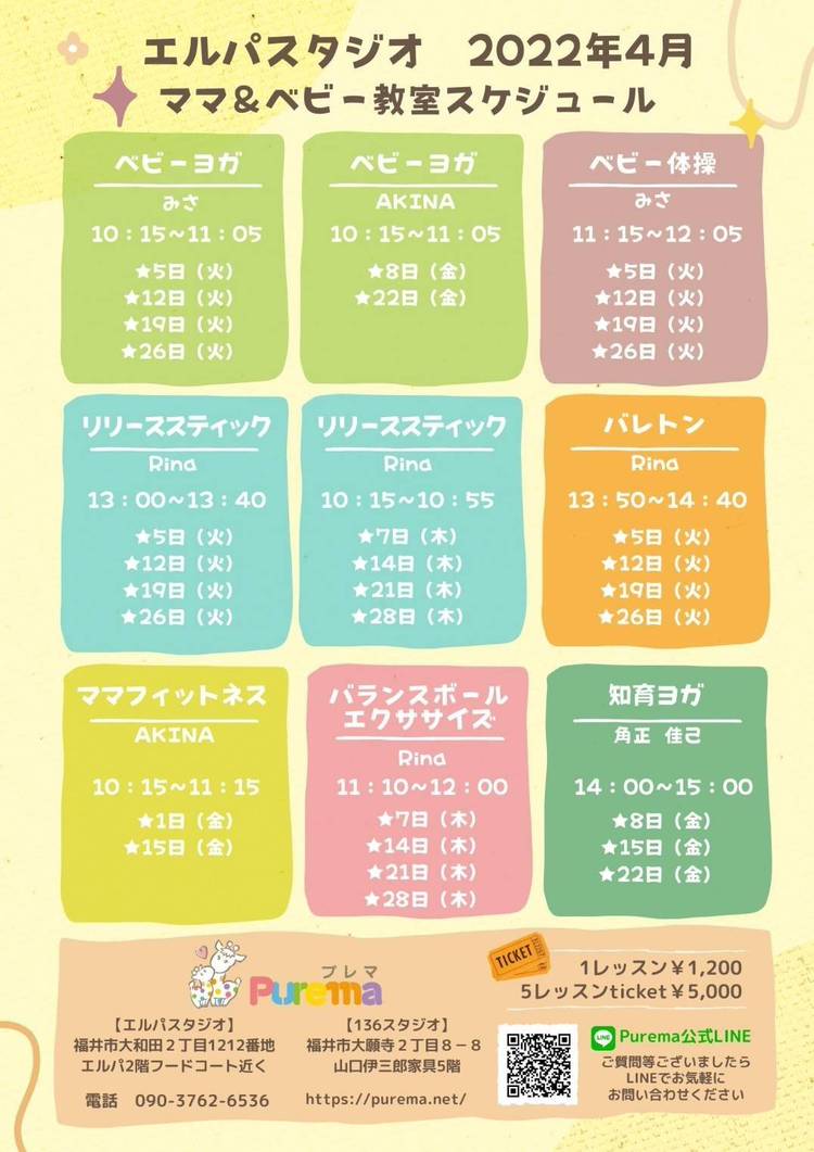 【レッスンのお知らせ🕊️】 いつもありがとうございます😊 ベビー♡キッズ♡ママの教室 Puremaです🌈 今週のレッスンスケジュールはこちら✨ 【24日(火)】 🌟10:15〜 ベビーヨガ ご予約はこちら▼ https://purema.hacomono.jp/reserve/space/8Y33DVYD 🌟11:15〜ベビー体操 ご予約はこちら▼ https://purem...