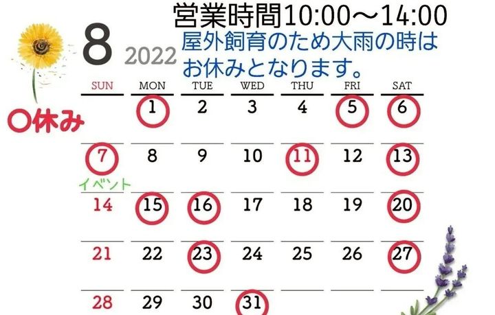 営業日は未定ですのでご来店の際はお問い合わせ下さい。
