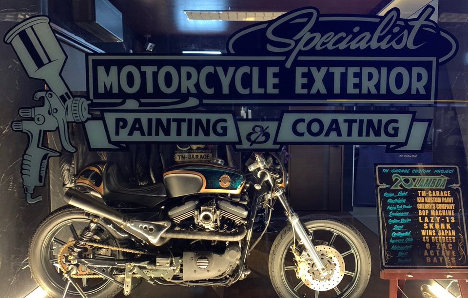 TM-GARAGEはオートバイ外装のスペシャリストです。 ◇ガラスコーティング ◇リペアペイント ◇カスタムペイント ◇カラーオーダー ◇水圧転写ペイント ◇焼付塗装全般など、お客様の様々なニーズにお応えしていきます。