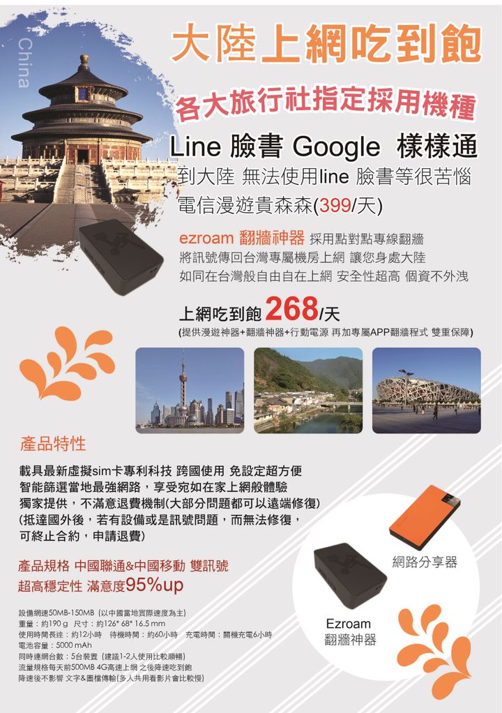 優惠價199一天 安卓提供免費app 蘋果手機需要下載後線上付費60使用4GB用量